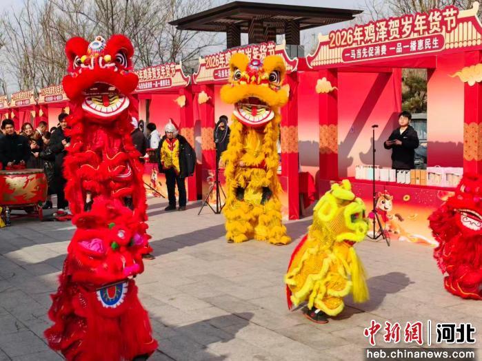 图为鸡泽县年货节现场正在进行舞狮表演。 王佳琪 摄