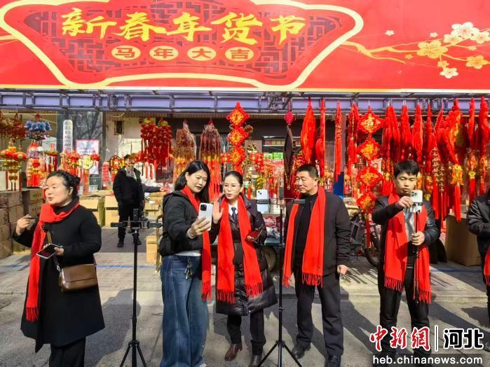 图为鸡泽县年货节现场,网红正在为年货门店免费直播宣传。 王佳琪 摄