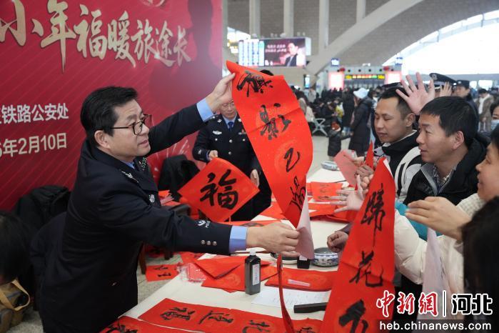 小年伊始,春运正忙。北京铁路公安局石家庄公安处以笔墨传情、以服务暖心,将传统文化与安全宣传相结合,为春运归途增添了浓浓的年味。(完)