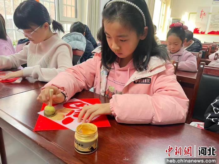 图为鸡泽县七彩课堂的小朋友在进行拓印福字。 孟灿 摄