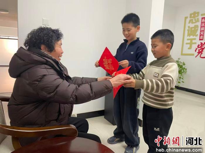图为鸡泽县七彩课堂的小朋友们为社区老人送上新年福字。 孟灿 摄