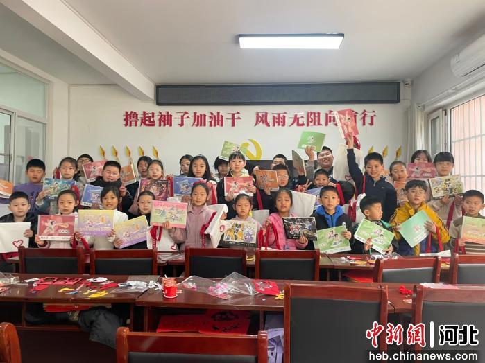 图为共青团鸡泽县委为七彩课堂的小朋友们送上暖心礼包。 孟灿 摄