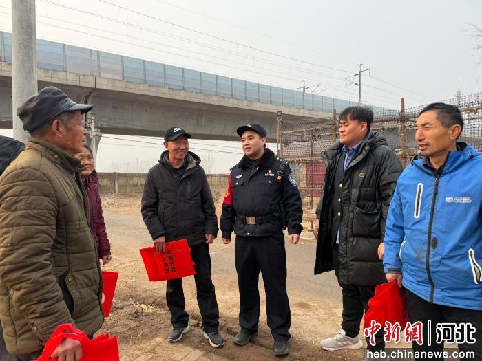 在爆台寺村广场,民警带头,与附近村庄村干部共同通过展板展示、发放宣传册等方式,向村民普及高铁安全法规。在沿线各个村庄,针对寒假在家的孩子们,宣传民警用动画、儿歌等形式,深入浅出地讲解铁路安全常识,鼓励他们争做“铁路安全小卫士”,通过“小手拉大手”带动家庭共同护路。对返乡过年的务工人员群体集中开展“反诈”宣传,提醒大家警惕假期期间以“机票退改签”“冒充亲友借钱”“网络刷单返利”等名义实施的电信网络诈骗,遇到可疑情况及时拨打报警电话咨询。