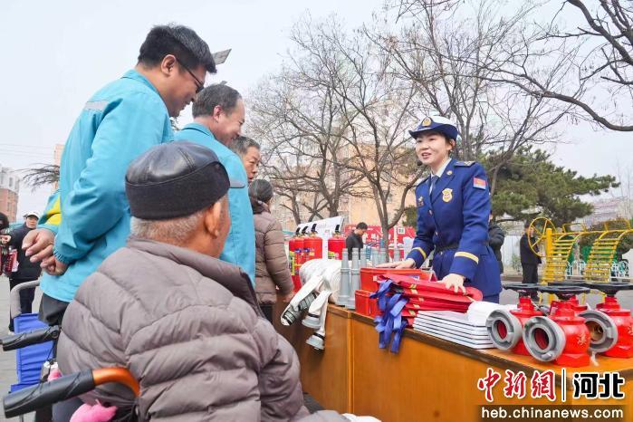 图为消防宣讲员为市民讲解消防器械安全知识。 杜昕雨 摄