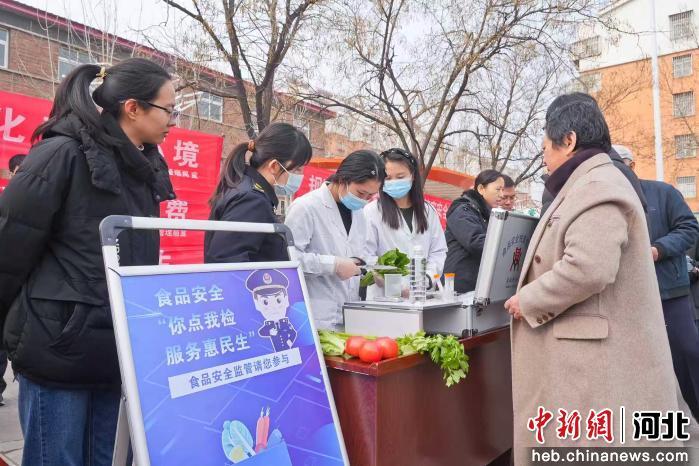 图为工作人员为市民检验蔬菜农药残留。 杜昕雨 摄
