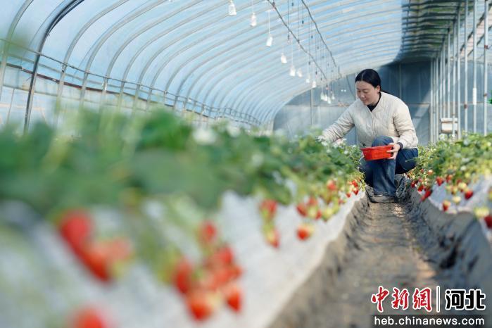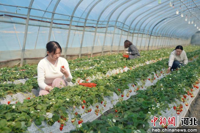中新网河北新闻3月19日电 (刘继东 田娇娇 郝荣)连日来,河北省邢台市内丘县各种植基地的温室大棚内生机盎然。草莓、西红柿等果实挂满枝头,香气四溢、长势喜人,吸引周边游客前来采摘品尝。