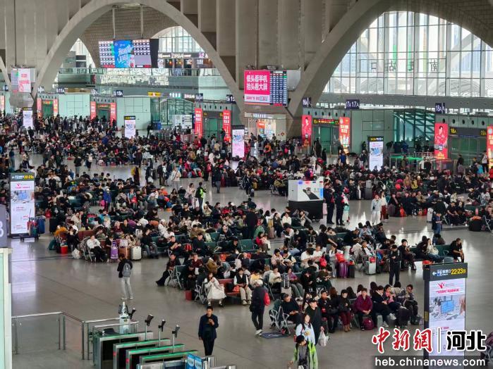 中新网河北新闻3月30日电 (韩日鑫)3月29日,君乐宝2026石家庄马拉松(简称“石马”)如约开跑,来自各地的跑者齐聚石门,奔赴这场春日之约。作为迎接参赛选手的重要交通枢纽,石家庄站当日迎来客流高峰,上车客流达11万人次、下车客流10万人次,身着参赛服的选手穿梭在站前广场、候车室,成为春日里一道动感的风景线。