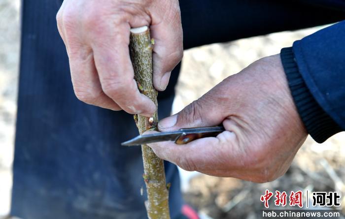 据介绍,此次栽种的树苗是生长一年的桃树苗,种下7天之后就要嫁接上杏梅芽,三年就能挂果,五年进入丰产期。“嫁接杏梅我们用桃树作砧木,把杏梅枝条上的芽削下来嫁接到桃树上。”种植户彭振昌边嫁接杏梅边介绍,“嫁接好后,还得把嫁接处上方的枝干剪短一点,这样能给新芽提供更多的养分,提高成活率。”正是这种精细化的管理,为桑庄村杏梅产业的规模化发展奠定了基础。