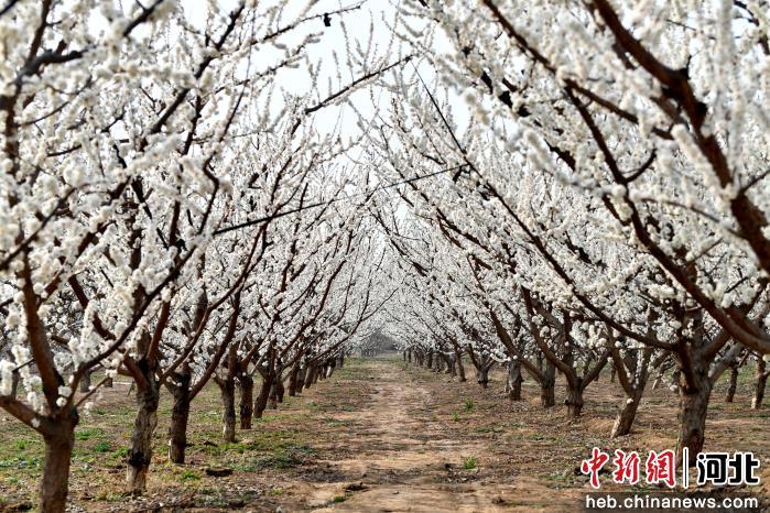 中新网河北新闻3月31日电 (赵秦 崔贤飞)近日,走进河北省阜城县阜城镇桑庄村杏梅园,杏梅花竞相绽放,花香四溢。田间地头,种植户们正抢抓农时进行杏梅嫁接,一排排新栽的桃树苗整齐排列,在暖阳下焕发出勃勃生机。