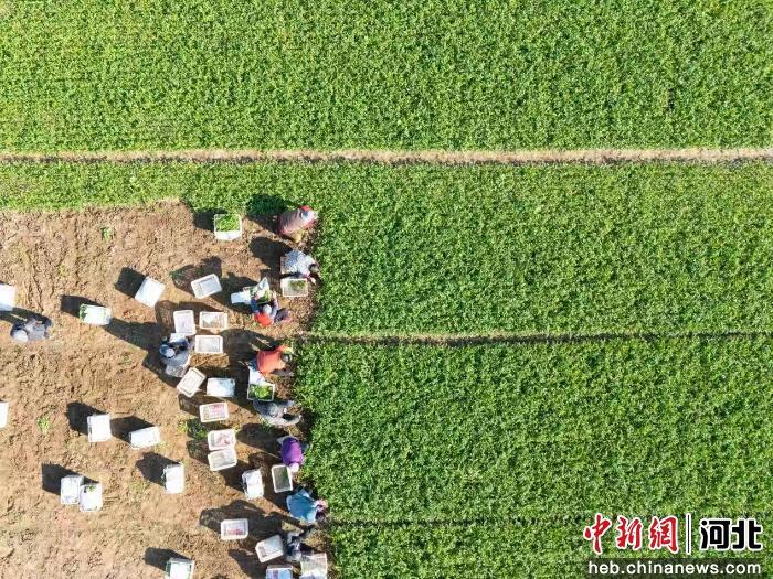 辛集镇种植的香菜迎来收获季,工人们忙着收割、捆扎、装箱,一派繁忙景象。 娄雅坤 摄