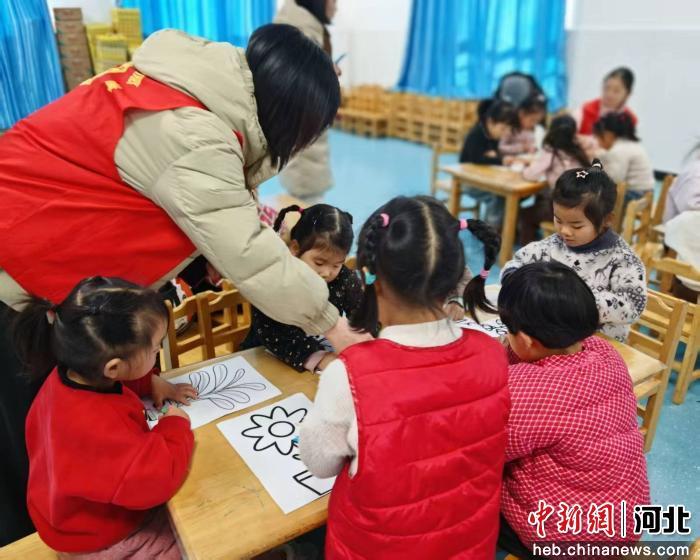 志愿者老师正指导孩子们为画填色。 尹林梦 摄
