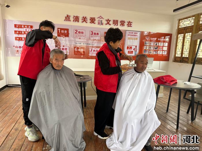 中新网河北新闻10月21日电 (袁宝利 张杨)剪刀的咔嚓声在河北省宽城满族自治县孟子岭乡南天门村“众小爱”村民驿站里轻轻响起,银白的发丝随着梳子簌簌落下,理发师傅手上稳当,眼神专注,正给一位眯着眼的大爷修剪鬓角。午后的阳光透过玻璃,照在布满皱纹却舒展的笑脸上,也照在志愿者那抹鲜红的马甲上——一场名为“文明实践 从‘头’开始”的爱心义剪,正悄然温暖着这个寻常的乡村午后。