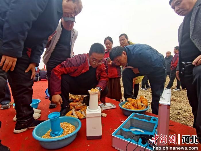 图为工作人员测算新收玉米的产量。 田志锋 摄