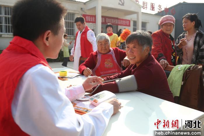 图为医务人员为老人测量血压。 郭江鹏 摄