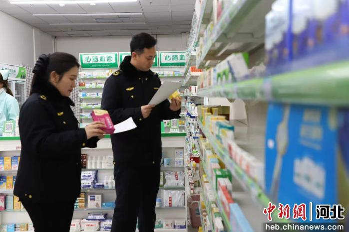 图为孟村市场监督管理局工作人员深入辖区药店检查药品安全。 杨洋 摄