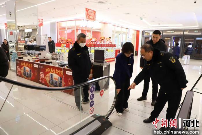 图为孟村市场监督管理局工作人员深入辖区各商超检查特种设备。 杨洋 摄