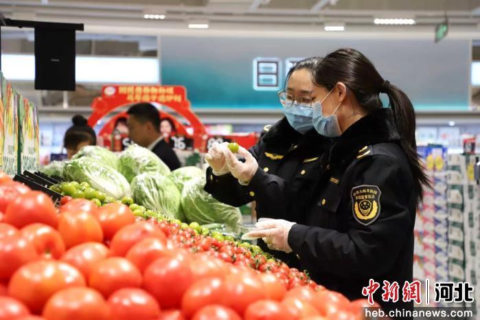 图为孟村市场监督管理局工作人员深入辖区商超检查食品安全。 杨洋 摄
