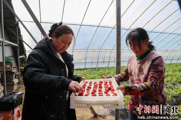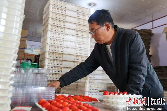 图为任丘市一草莓种植大棚,农户正在打包草莓。 黄杉杉 摄