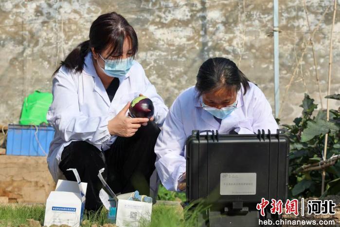 图为任丘市于村镇一蔬菜种植大棚,工作人员正在检测农产品。 黄杉杉 摄