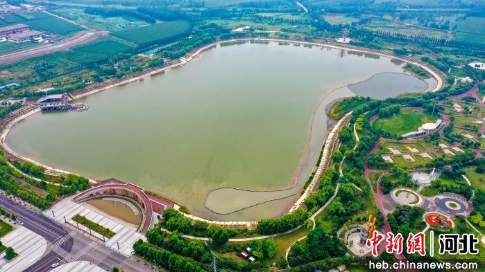 傍晚时分,武强县音乐公园吉他湖畔,群众三五成群,沿着生态廊道散步休闲。这片占地869亩的水利风景区,此前只是一个废弃坑塘。如今,它不仅成了市民的“后花园”,内湖更蓄水135万立方米,可满足周边近万亩耕地的灌溉需求。