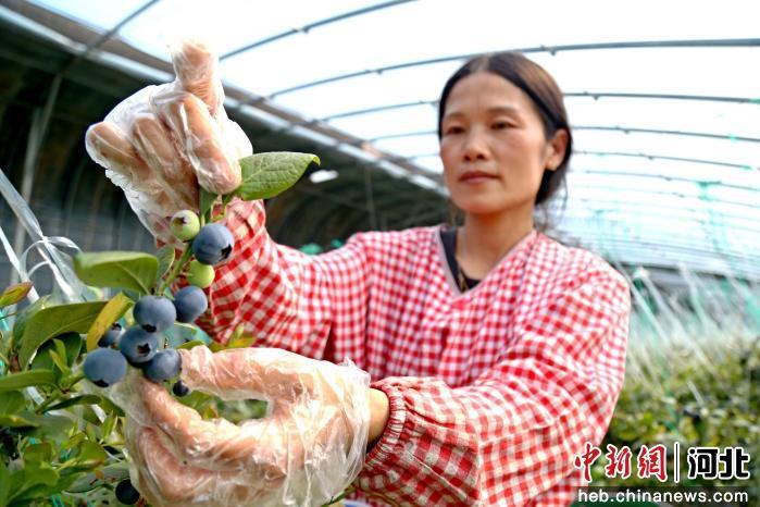 中新网河北新闻3月25日电 (郭江鹏)24日,河北省邯郸市馆陶县息元村蓝莓种植基地迎来采收季,农户们忙着采摘蓝莓,一筐筐蓝莓成为村民增收的“致富果”。