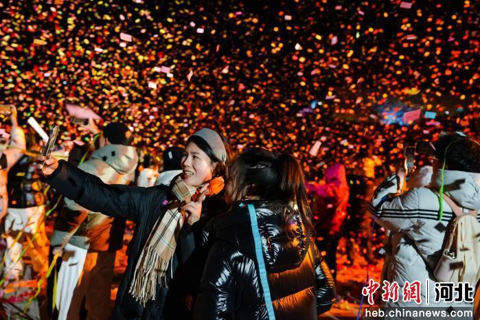 中新网河北新闻1月5日电 (宋敏涛 王巍)2025年12月31日晚,随着零点倒计时开启,河北廊坊只有红楼梦·戏剧幻城16扇象征传统意象的“中国门”次第点亮,数百盏系着游客心愿卡的孔明灯与漫天彩带交织,来自京津冀及全国各地上万名游客共同迎接2026年的到来。