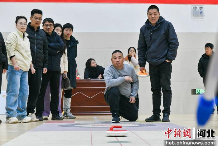 中新网河北新闻12月23日电(王天译 杜昕雨)23日上午,河北省邯郸市冀南新区在邯郸市第三十三中学开展陆地冰壶比赛,吸引了来自全区各乡镇(办)、学校、企事业单位的55支代表队、300余名选手参加。