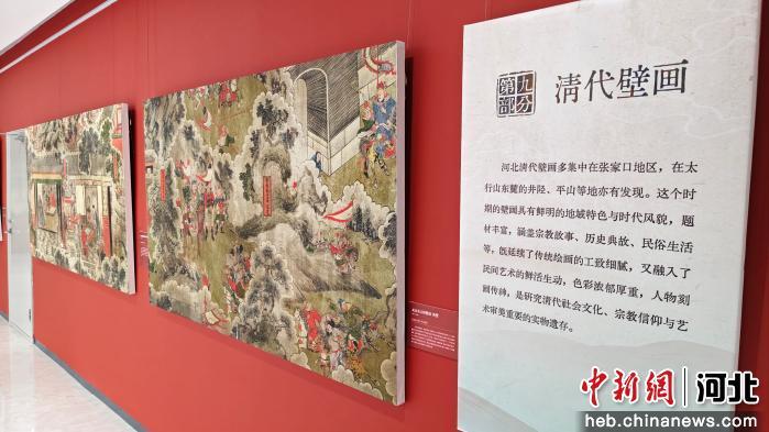 展览精心规划了汉代壁画、东魏北齐壁画、晚唐五代壁画、宋代壁画、辽代壁画、金代壁画、元代壁画、明代壁画、清代壁画九个展区,汇聚了百余幅自东汉至清代的壁画艺术珍品。这些作品宛如一部鲜活的史书,以独特的艺术语言,讲述着河北大地跨越千年的历史变迁与文化传承。