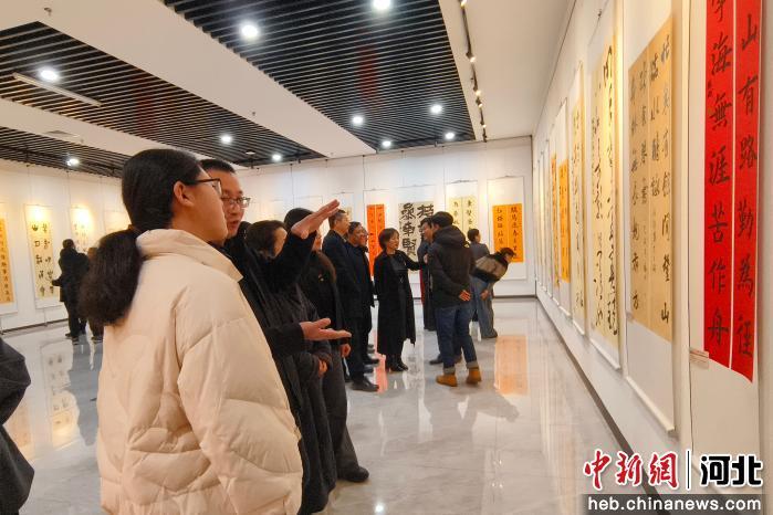 中新网河北新闻2月5日电 (徐巧明 李月英)为营造欢乐祥和的节日氛围,2月4日,保定市徐水区“山河跃马·联墨迎春”首届楹联书法展在该区美术馆开幕。