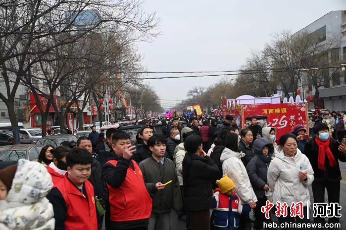 中新网河北新闻2月28日电 (韩富强 霍增月)28日上午,河北省曲周县举办2026年元宵节“民间花会闹凤城”花车巡游大型展演活动。来自全县10个乡镇的1500多名民间艺人组成60余支展演队伍,沿着街道或特定路线表演,吸引众多居民和游客驻足观看。