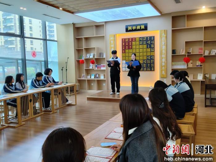 中新网河北新闻3月27日电 (赵依 梦张佩)春风送暖,梨花飘香。27日,河北魏县图书馆国学馆内正在举办一场“梨花风起”读书会。