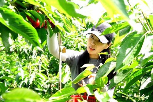 图为游客采摘的樱桃。 杨力 摄