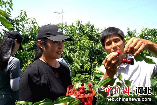 中新网河北新闻6月6日电 (王天译 冯静)5日,河北省邯郸市临漳县孙陶镇的樱桃迎来了采摘季,一串串樱桃挂满枝头,游客们穿梭其间忙着采摘、品尝。