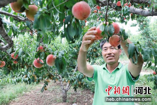 中新网河北新闻7月10日电 (徐巧明 张明月)7日,走进河北省顺平县望蕊桃产业现代农业园区,果农们正忙着采摘、分拣、装箱,一颗颗红润饱满的桃果贴上了“国家地理标志”专用标签,准备发往北京、天津、上海等地市场。