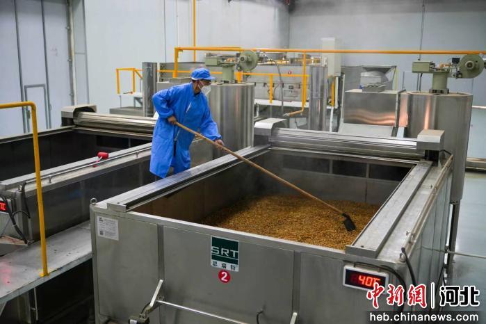 图为任丘市石门桥镇一食品加工企业,工作人员正在加工葵花籽。 韩慧峰 摄