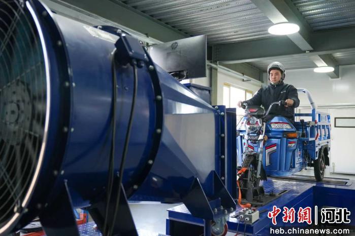 图为任丘市一交通设备生产企业,工人正在测试产品。 韩慧峰 摄