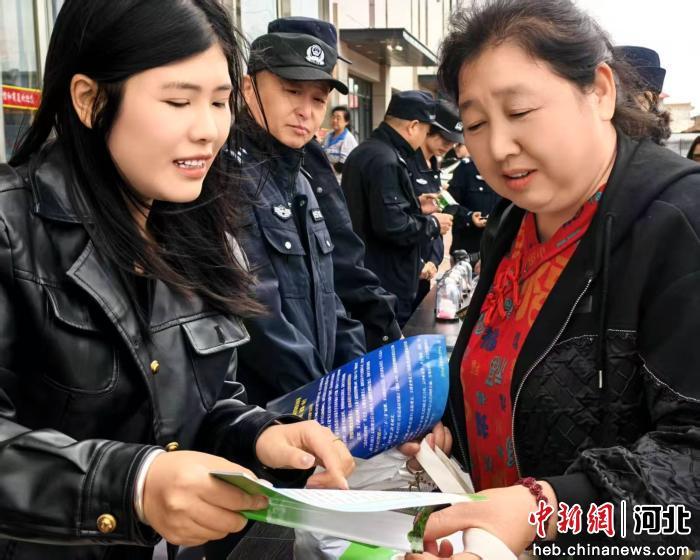 图为泊头市司法局工作人员向过往群众普及知识产权法律法规。 朱艳丽 摄