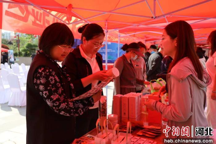 图为工作人员为群众介绍中药茶饮功效。 王晓芳 摄