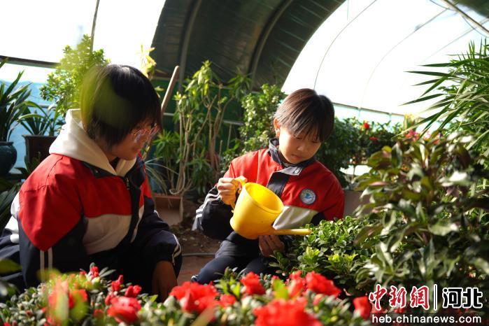 图为内丘县第二中学学生在劳动教育实践基地学习花卉知识。 付瑞琨 摄