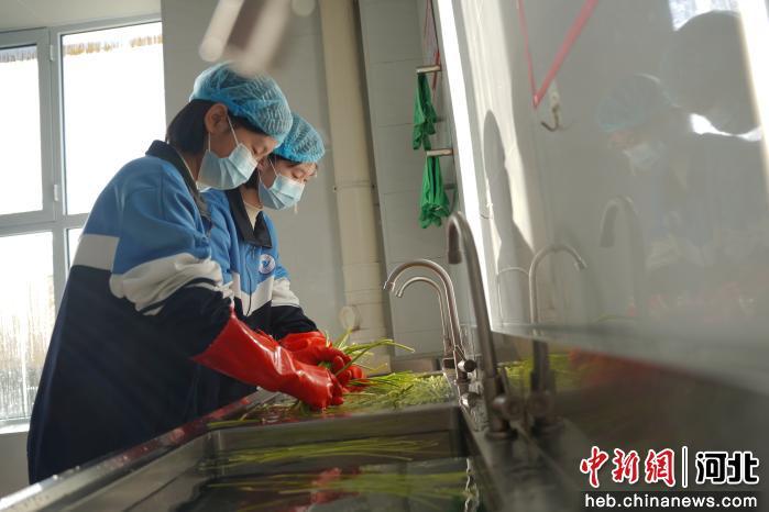 图为内丘县第二中学学生在食堂后厨体验洗菜。 谢亚男 摄