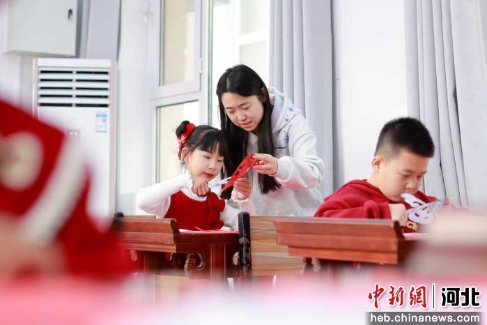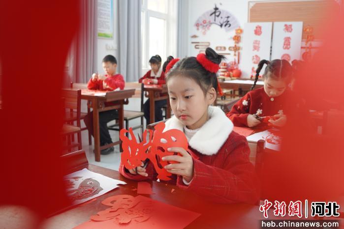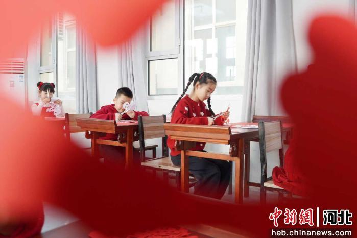 图为内丘县五郭店中心小学学生在学习剪纸。 刘媛媛 摄