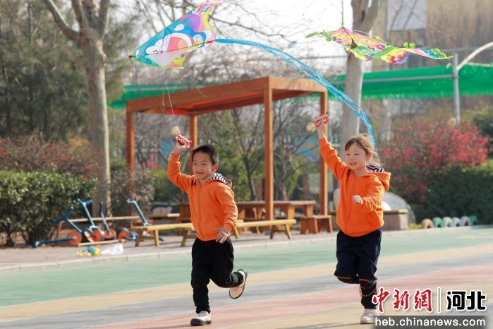 图为内丘县第三幼儿园的孩子们在放风筝。 刘继东 摄
