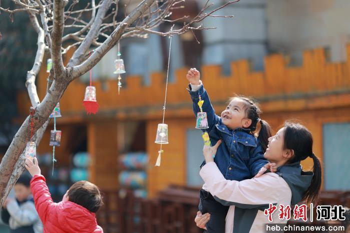 图为内丘县第二幼儿园的老师带孩子们挂风铃。 刘继东 摄