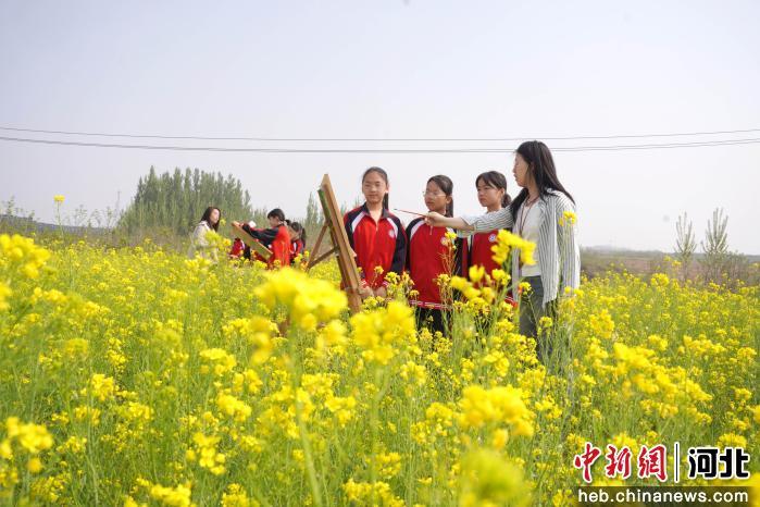 活动现场,老师带领学生走进户外油菜花海,引导孩子们细致观察花朵的形态、色彩与生长姿态。同学们手持画笔,用颜料定格春日美景,在自然中锻炼观察能力与绘画能力,真切感受艺术的魅力。
