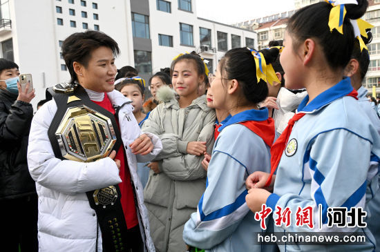 中新网河北新闻1月18日电 (记者 王天译)17日下午,中国首位UFC格斗冠军张伟丽回到母校——河北省邯郸市峰峰矿区响堂小学,为重新修建的响堂小学揭牌。