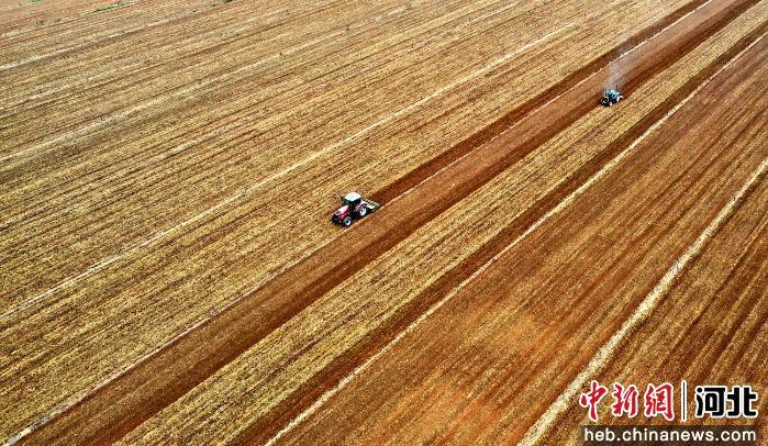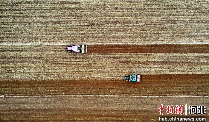 中新网河北新闻10月29日电 (崔志平 苗凤强 崔贤飞)近日,在河北省衡水市阜城县崔家庙镇一麦田里,若干台大型撒肥机、旋耕机、播种机来回穿梭,一派繁忙景象。伴随着机械轰鸣声,从精准撒肥到深度旋地,再到精量播种,一套标准化的冬小麦秋播流程有序推进。