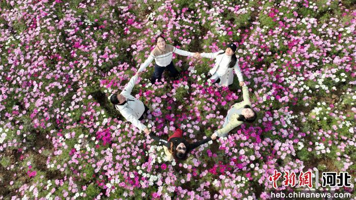 图为游客在河北省隆尧县尧山的格桑花海中赏花游玩。  张冬茹 摄