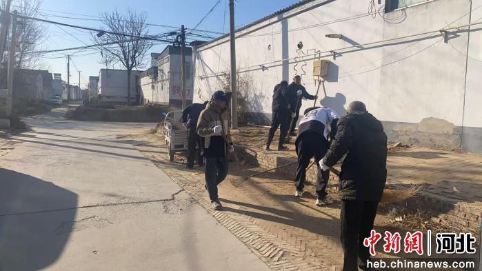 党员干部清扫村内街道。 蠡县县委宣传部供图