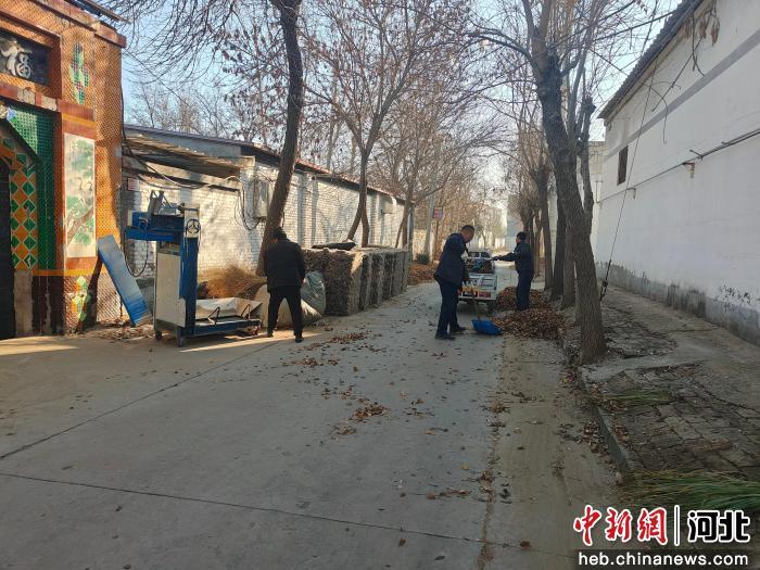 党员干部清扫村内落叶。 蠡县县委宣传部供图