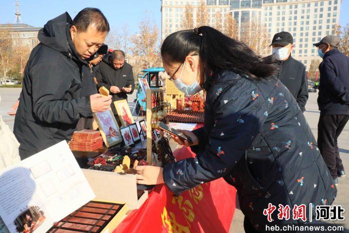 图为在南宫市人民广场,市民在参观非遗文创作品。 田优 摄